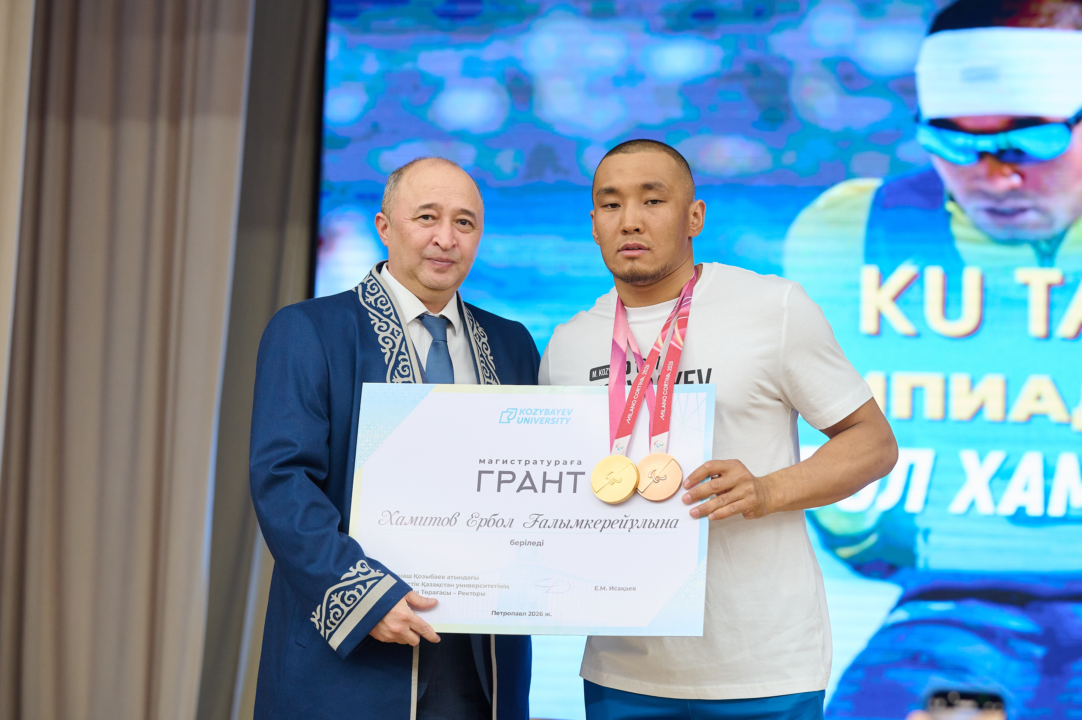 Бүгін Қозыбаев университеті студентіміз, 2026 жылғы Паралимпиада ойындарының жеңімпазы және жүлдегері, университетіміздің абыройын асқақтатқан Ербол Хамитовқа құрмет көрсетіп, чемпионды қарсы алды.