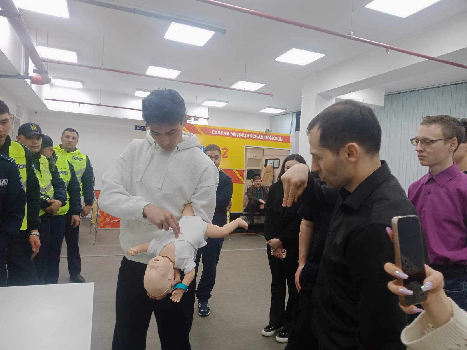Қазіргі таңда қауіпсіздік деңгейін арттыру және төтенше жағдайларға дайындықты күшейту студенттерге алғашқы медициналық көмек көрсету дағдыларын үйретуде кешенді тәсілді талап етеді. Осы бағыттағы тиімді әдістердің бірі-оқиға орнында көмек көрсету барысында студенттердің полиция қызметкерлерімен тығыз өзара іс-қимылын ұйымдастыру болып табылады. Студенттер топпен жұмыс істеуді, жедел шешім қабылдауды тәжірибе жүзінде меңгерді.