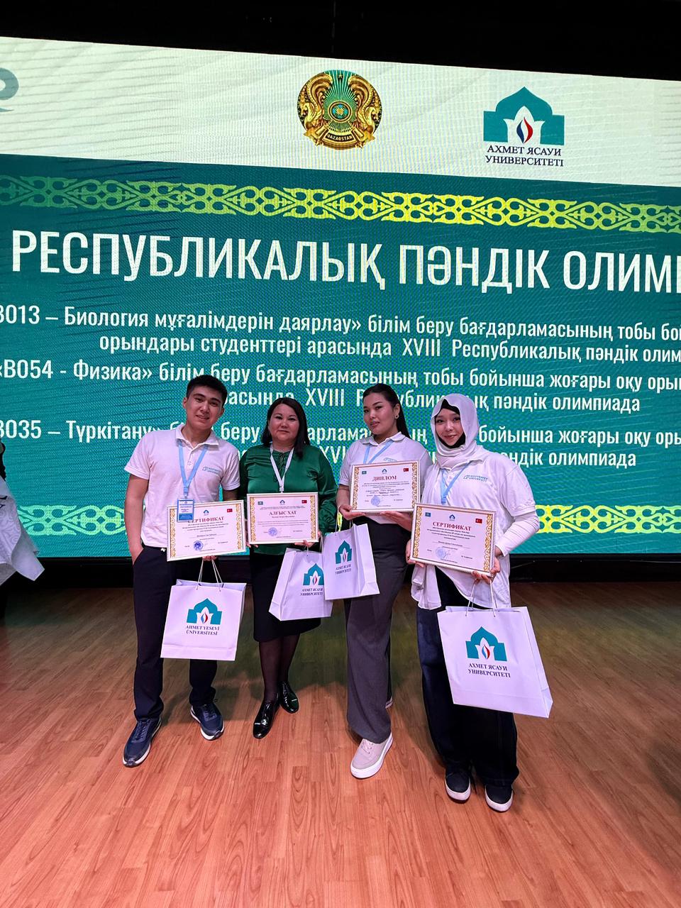 Қожа Ахмет Ясауи атындағы Халықаралық қазақ-түрік университеті базасында Түркістан қаласында өткен биология пәні бойынша олимпиадада: