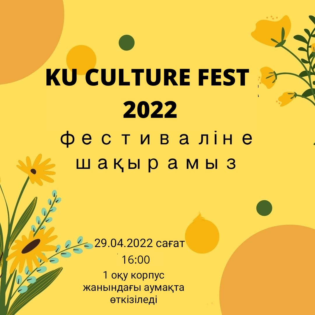 Сіздерді KU Culture Fest 2022 фестиваліне шақырамыз. Фестиваль Қазақстан халқының бірлігі күніне арналған.